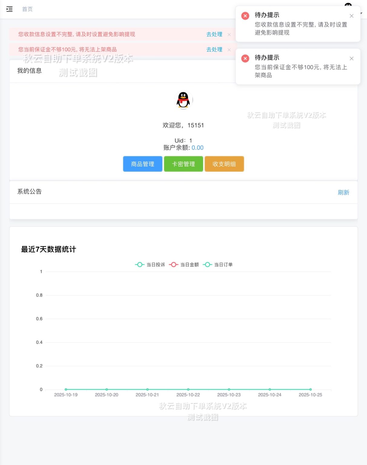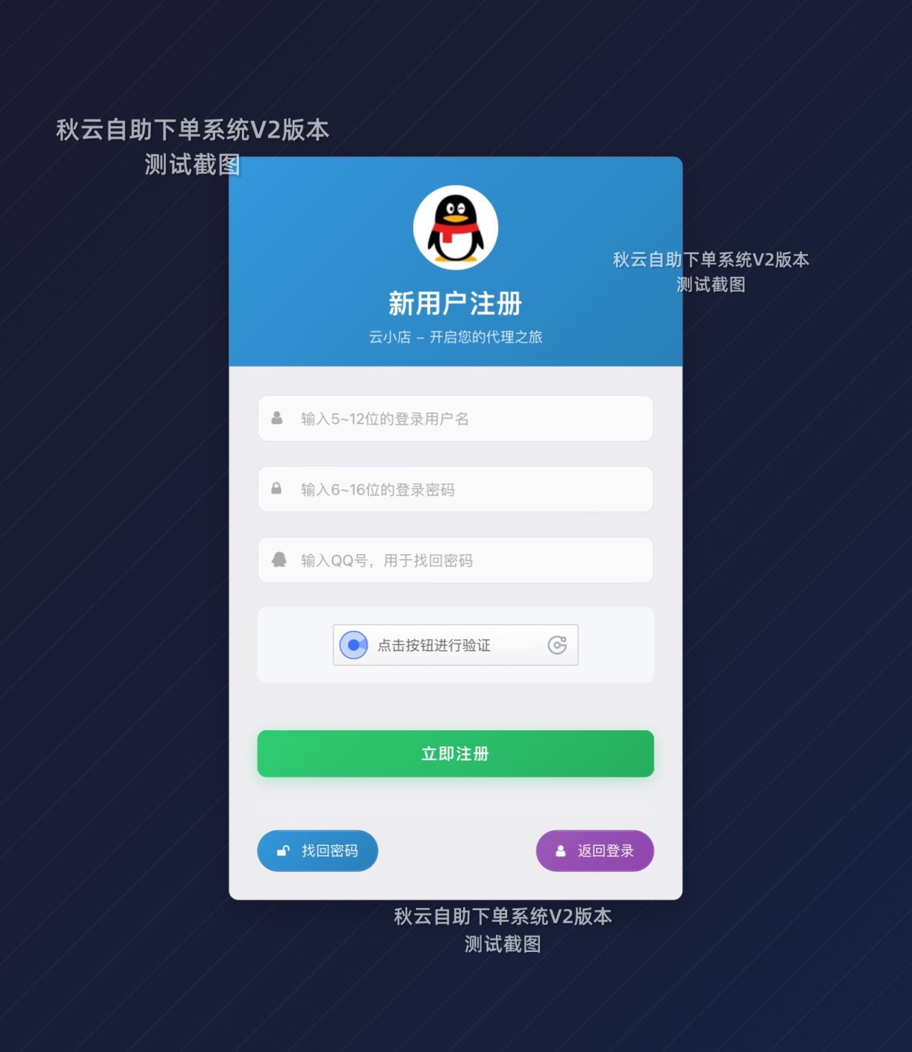 秋云自助下单系统更新V2版本 彩虹云商城二开美化版