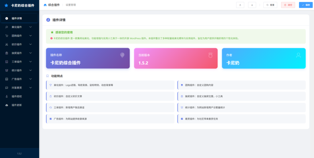 这款综合插件并非简单的功能堆砌,而是针对子比主题的深度优化与扩展。它主要由以下八大核心模块组成: