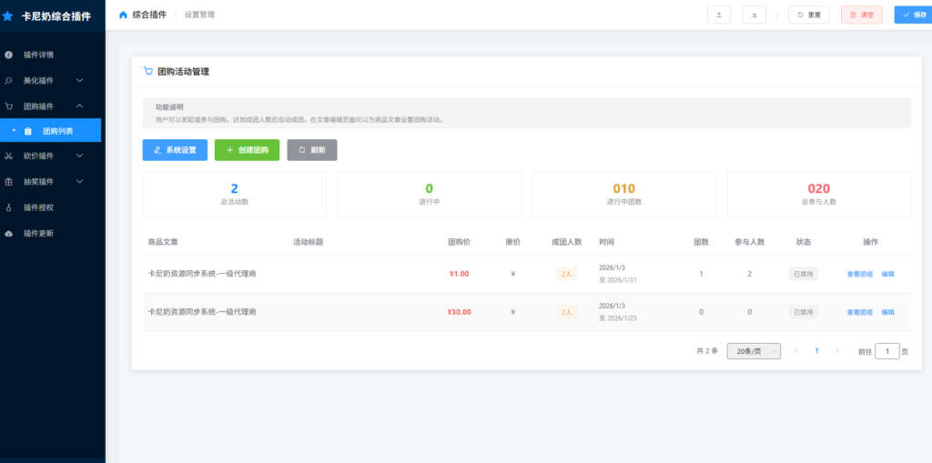 * 拼团功能: 支持设置多人拼团、阶梯拼团等多种模式。